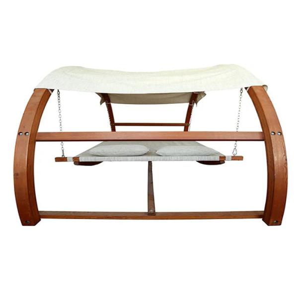 Garden Outdoor Double Arched Larch Frame White Hammock Swing Bed With Canopy Images |